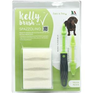 Kelly Brush Kit Spazzolino e Spugnette Taglia Media per Cani - 12 Applicazioni Antiplacca e Antitartaro