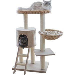 Kerbl Pet Tiragraffi Ladder - Beige, 97x39,5x134 cm, in Legno Massiccio con 3 Zone di Riposo