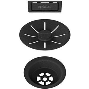 BLANCO Set di Scarico e Troppopieno per Lavabo Singolo - Acciaio Inossidabile Nero Opaco, Facile da Pulire