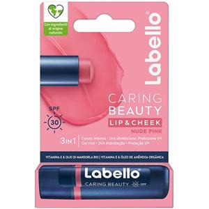 Labello Caring Beauty Balsamo Labbra e Guance Colorato 3 in 1 SPF 30 - Idratazione 24 ore, Colore Intenso, 4,8 g
