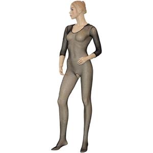 NO:XQSE Catsuit Nero in Rete con Maniche Lunghe e Apertura Sexy - Taglia Unica S-L