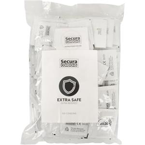 Secura Extra Safe - Preservativi Trasparenti 100 pz, 53 mm, Extra Resistenti e Lubrificati
