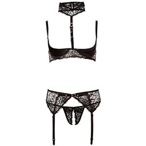 Abierta Fina Set Trio Lingerie Sexy in Pizzo con Perizoma Aperto e Spalline Regolabili