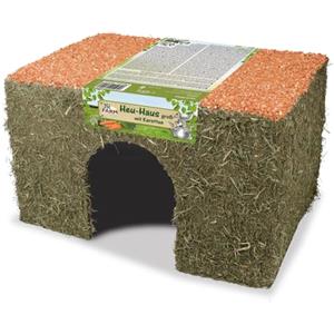 JR Farm Casetta in Fieno con Carote - 600 g, Nascondiglio Naturale per Conigli e Roditori, Supporta l'Abrasione dei Denti