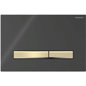 Geberit Sigma 50 Placca di Azionamento per WC in Vetro Nero con Pulsanti in Ottone - Doppio Tasto, 115.672.DW.2