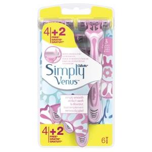 Gillette Simply Venus 3 - Rasoio Usa e Getta per Donna con 3 Lame e Striscia Lubrificante Aloe - Confezione da 6 Pezzi