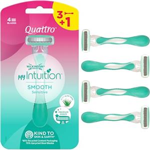 Wilkinson My Intuition Quattro Smooth Sensitive - Rasoio Usa e Getta con 4 Lame e Strisce Lubrificanti all'Aloe Vera e Vitamina E - Confezione 3 1