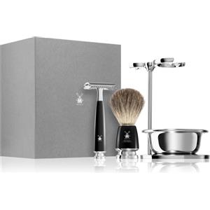 Mühle Rytmo - Set da rasatura completo con pennello in pelo di tasso, rasoio e supporto in resina nobile nera