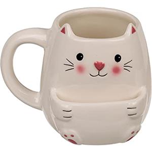 Out of the Blue Tazza da Caffè a Forma di Gatto con Scomparto per Biscotti - Ceramica Trasparente, Capacità 300 ml