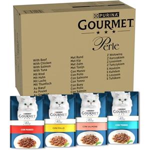 Gourmet Perle Cibo Umido per Gatti Adulti - Filettini in Salsa con Manzo, Pollo, Salmone e Tonno - 96 Buste da 85g