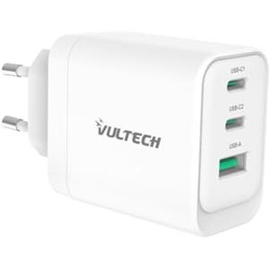 VulTech CC65-2C1A Caricatore Universale 65W GaN con 2 Porte Type-C e 1 Porta USB-A, Ricarica Ultraveloce e Dimensioni Compatte
