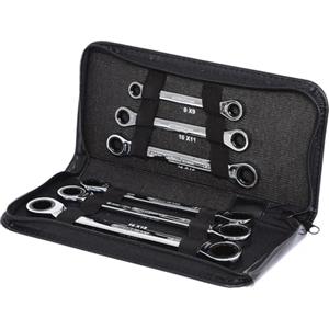 KS Tools 503.4666 Set di Chiavi a Cricchetto Combinate GEARplus Reversibili, 16 Pezzi 8-19 mm, con Adattatore, Profilo FlankTraction, Bocca Inclinata a 15°, Testa a Cricchetto Piegata a 15°, Dentatura 72 Denti in Ferramenta