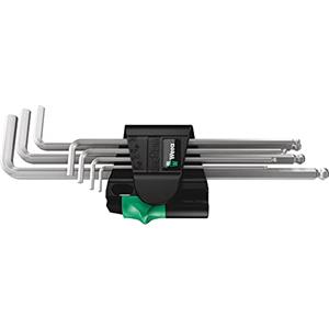 Wera Set di Chiavi Esagonali a L Hex-Plus, Cromate, 7 Pezzi, Acciaio al Cromo-Vanadio, Gambo Piegato, Testa Sferoidale