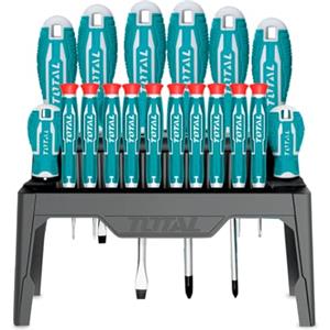 TOTAL Set di Cacciaviti - 18 Pezzi in Cromo Vanadio con Punta Magnetica e Manico Ergonomico