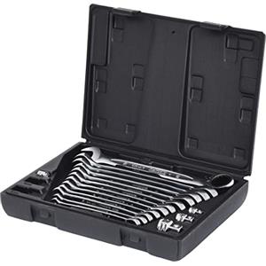 KS Tools 503.4666 Set di Chiavi a Cricchetto Combinate GEARplus Reversibili, 16 Pezzi 8-19 mm, con Adattatore, Profilo FlankTraction, Bocca Inclinata a 15°, Testa a Cricchetto Piegata a 15°, Dentatura 72 Denti