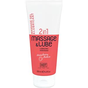 HOT Gel per Massaggi e Lubrificante 2in1 Fragola 200ml - Nutre la pelle, non appiccica e compatibile con preservativi