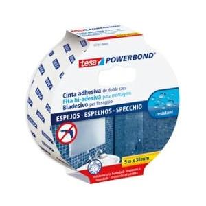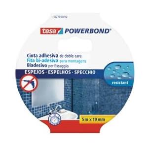 Tesa Powerbond Specchi - Nastro Biadesivo Resistente All'Umidità per Fissaggio di Specchi - 5 m x 19 mm