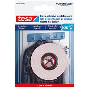 Tesa Nastro Biadesivo 77746-00001-00 per Fissaggio su Piastrelle e Metallo - Bianco, Resistente e Versatile