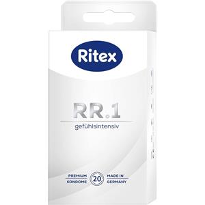 Ritex 20 RR.1 - Preservativi lubrificati trasparenti con serbatoio, superficie morbida e setosa, Made in Germany