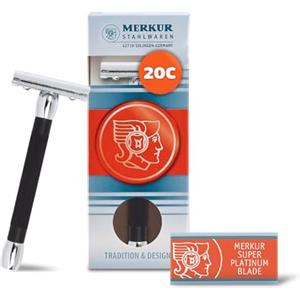 Merkur Rasoio di Sicurezza 25 C con Manico Lungo e Pettine Aperto, Cromato, Include 1 Lametta Campione