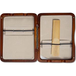 GEWA Astuccio per Ance Clarinetto 6 Ance in Legno Laccato Rosso Scuro con Meccanismo di Chiusura e Fori di Ventilazione