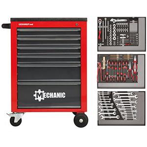Gedore R21560004 Carrello Portattrezzo da Officina MECHANIC con 129 Utensili, 6 Cassetti, Struttura in Lamiera d'Acciaio, Rosso/Nero