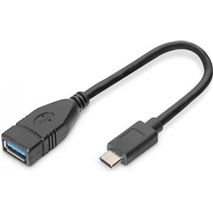 Digitus Cavo Adattatore USB Type-C a USB A, OTG, 0,15 m, USB 3.2 Gen 1, Maschio/Femmina, Nero, Velocità fino a 5 Gbit/s, Supporto alimentazione 3A