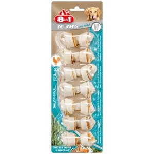 8in1 Delights Ossi da Masticare Pollo per Cani Piccoli - 210 g, 6 Pezzi, Snack Dentale con Pelle di Manzo e Petto di Pollo
