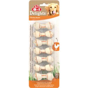 8in1 Delights Ossi di Pollo XS Snack per Cani - 85 g, 7 Pezzi, Ricchi di Proteine e Poveri di Grassi, Cura dei Denti