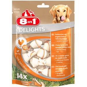 8in1 Delights Snack per Cani al Pollo XS - 21 Pezzi, con Petto di Pollo e Pelle di Manzo, Ideale per la Cura dei Denti