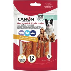 Camon Rolls di Pelle Bovina con Pollo e Merluzzo - Snack Masticabile per Cani Adulto, Gluten Free, 70g