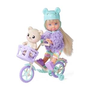 Simba Evi Love Teddy Bike, bambola da gioco con una giacca soffice, con casco, scarpe, bicicletta e orsacchiotto, 12 cm, dai 3 anni in su