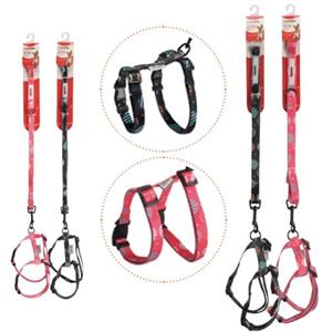 Camon Pettorina ad H Regolabile con Guinzaglio Coordinato - Misura 10 x 180-260 mm, Colori Nero e Fucsia