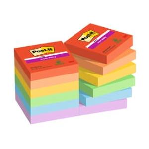 Post-it Super Sticky Playful - Blocchetti da 90 foglietti (47,6x47,6 mm) in assortimento colori: Blu, Arancio, Rosso, Giallo, Verde - Conf. 12