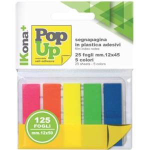 Ikona Segnapagina Adesivi in Plastica - 5 Pad Assortiti da 25 Segnapagina Colorati - 12x45 mm