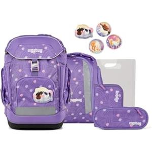 ergobag maxi set Set di 6 pezzi, zaino scolastico, cartella ergonomica, ideale per bambini grandi a partire dalla prima elementare PonyBearadise - Lavanda