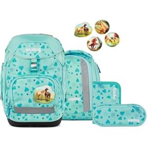 ergobag pack set zaino scolastico ergonomico, zainetto scuola flessibile 6 pezzi prima elementare HorsedreamBear - Turchese