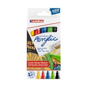 Edding 5100 Marcatore Acrilico Punta Tonda 2-3 mm Tratto Medio - Colori Assortiti (Nero, Rosso, Blu, Giallo, Verde) - Confezione da 5
