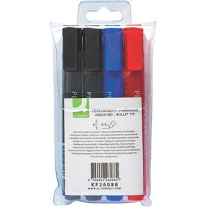 Q-Connect Marcatore Permanente Punta Tonda 2-3 mm - Astuccio con 4 Colori Assortiti (2 Nero, 1 Rosso, 1 Blu)