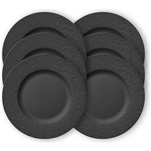 Villeroy & Boch Manufacture Rock - Set di 6 Piatti Piani in Porcellana Premium, Lavabili in Lavastoviglie e Utilizzabili nel Microonde, Design Ardesia Nero