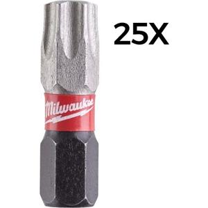 Milwaukee Bit Shockwave TX30 25mm - Confezione da 25 pezzi per Avvitatori ad Impulsi