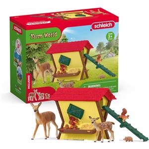 Schleich 42658 Mangiatoia nel Bosco - Playset Farm World, 39 Pezzi, da 3 Anni, con Tetto Rimovibile e Figure Dettagliate