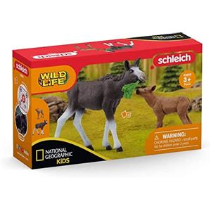 schleich Femmina di alce con cucciolo 42629 - Playset WILD LIFE, 3 pezzi, da 3 anni