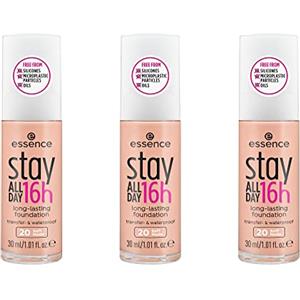 Essence stay ALL DAY 16h fondotinta a lunga durata, Make Up, resistente all'acqua, Nr. 20 Soft Nude, nude, a lunga tenuta, opacizzante, opaco, vegan, senza olio, resistente all'acqua, confezione da 3