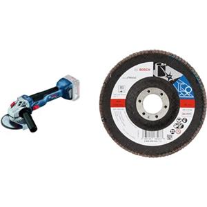 Bosch Professional GWS 18 V-10 Smerigliatrice Angolare a Batteria (Cartone da 125 mm), in Karton, Senza Batteria e Caricatore Scuro + Disco lamellare, diametro 125 mm, diametro foro 22,23 mm