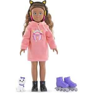 Corolle - Bambola Melody da 28 cm con vestito rosa, cappuccio e 4 accessori per bambini dai 4 anni