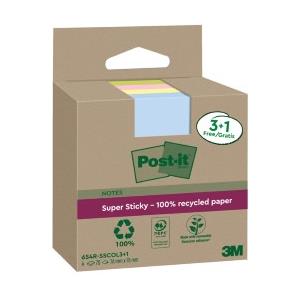 Post-it SuperSticky Green - 76x76mm, 70 Fogli in Carta Riciclata, Colori Pastello Assortiti, Confezione 3 1