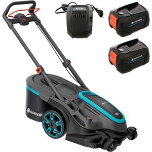 Gardena PowerMax Duo 46/36V - Tagliaerba a Batteria con Doppia Lama, 2 Batterie P4A 2.5Ah, Larghezza di Taglio 46 cm, Design Ergonomico