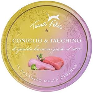 Terra Felis Cibo Umido per Gatti - Coniglio e Tacchino 80g - 90% Carne Senza Cereali