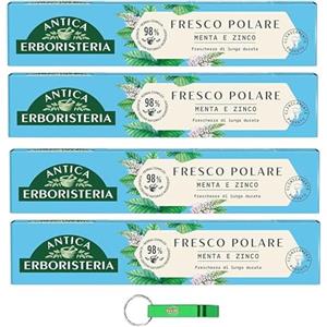 Beni Culinari 4 x Antica Erboristeria - Dentifricio Fresco Polare - Dentifricio Polar Fresh con menta e zinco 75 ml + portachiavi Beni Culinari gratuito